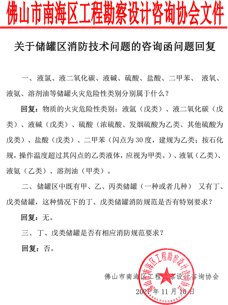 当前位置:首页 > 行业新闻 > 行业动态 > 协会关于储罐区消防技术问题的咨询函(回复)