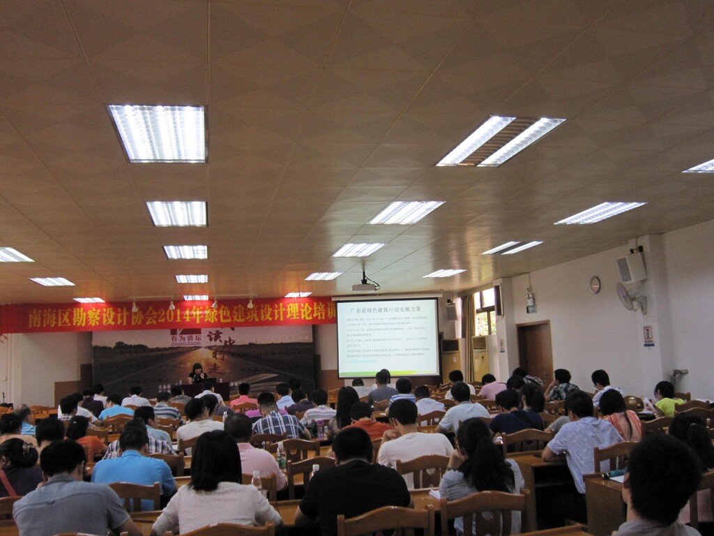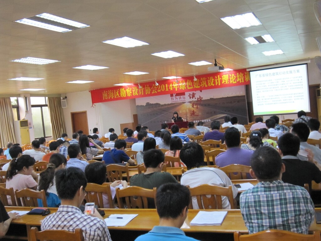 协会于2014年5月26日上午9点,在南海区图书馆三楼报告厅举办了2014年绿色建筑设计理论培训班,参加培训的单位有勘察、设计、设计施工一体化、咨询、造价、审图共180人,由佛山科学技术学院环境与土木建筑学院教授吴苗苗主讲,培训的主要内容解读广东省绿色建筑行动实施方案(粤府办〔2013〕49号)、绿色建筑政策与审查要点解析、设计单位绿色建筑整体解决方案介绍、绿色建筑设计技术讲解与案例分享。培训班达到预期的效果。