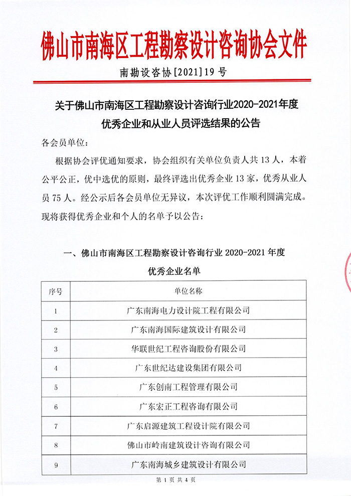 当前位置:首页 > 行业新闻 > 协会动态 > 2021-19关于佛山市南海区工程勘察设计咨询行业2020-2021年度优秀企业和从业人员评选结果的公告