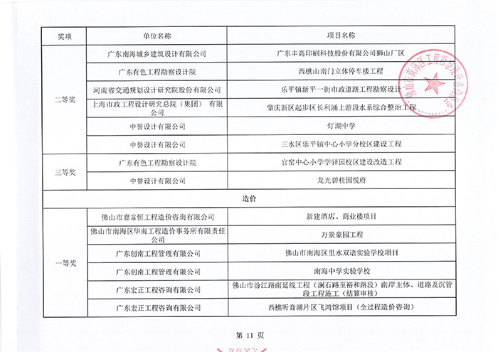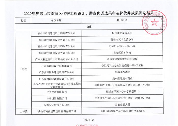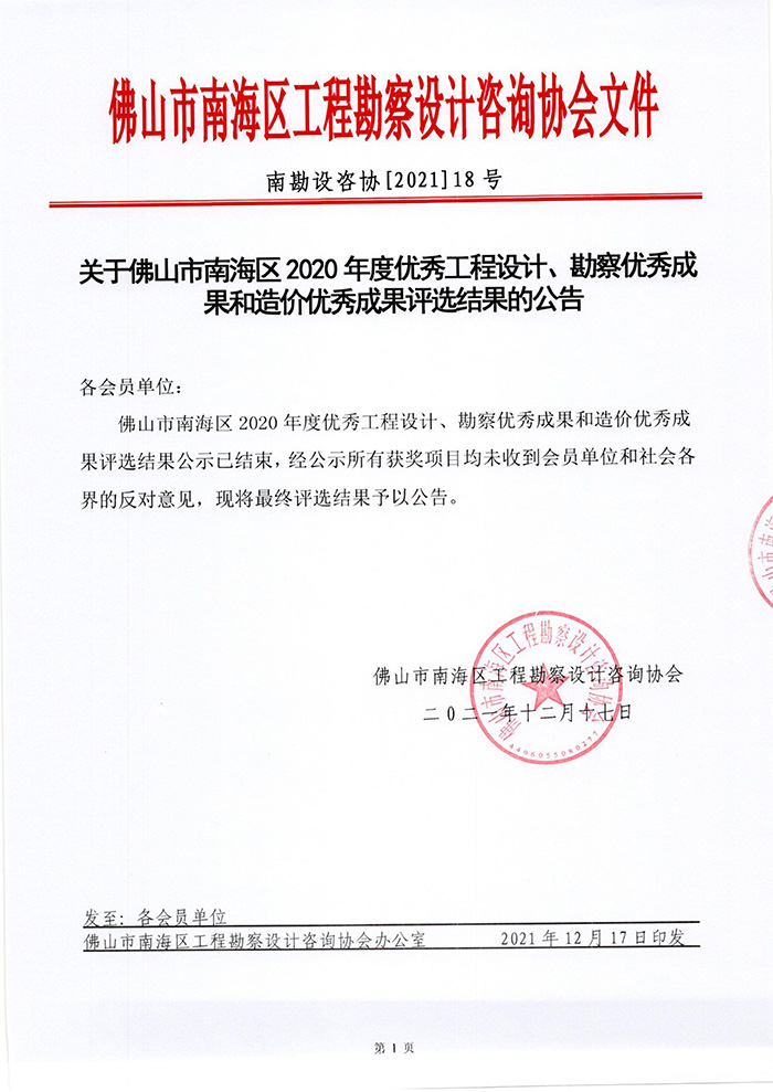 2021-18关于佛山市南海区2020年度优秀工程设计、勘察优秀成果和造价优秀成果评选结果的公告